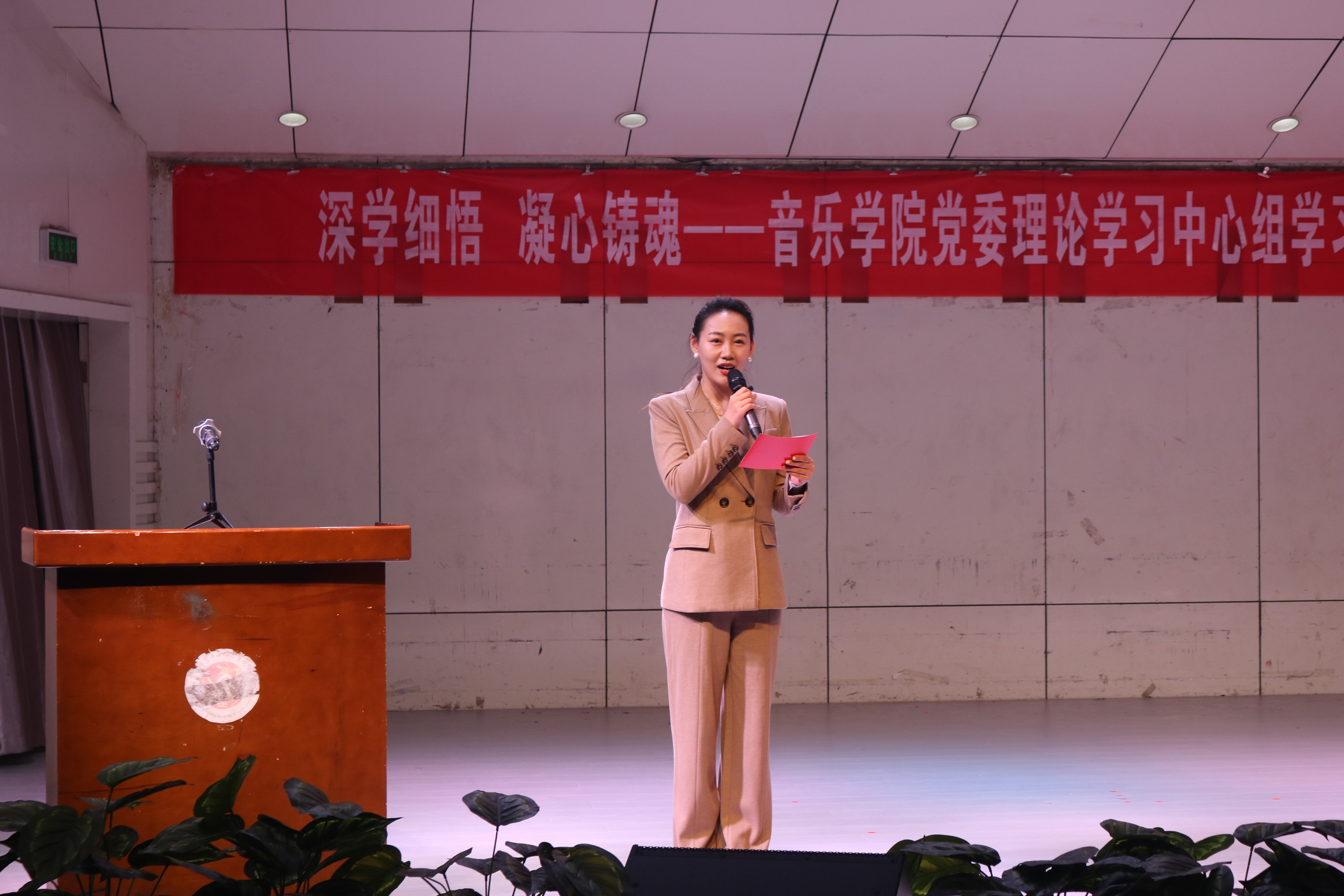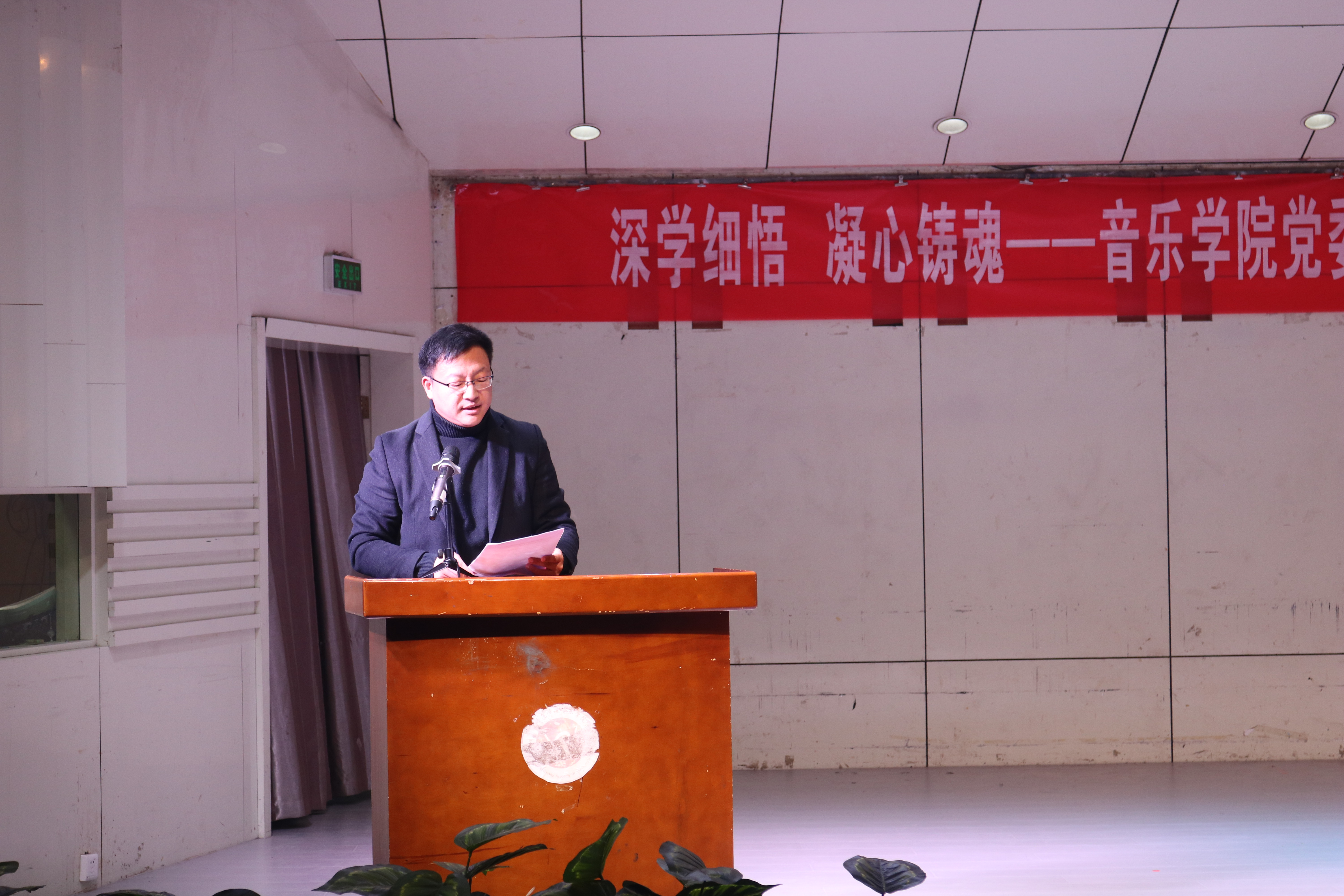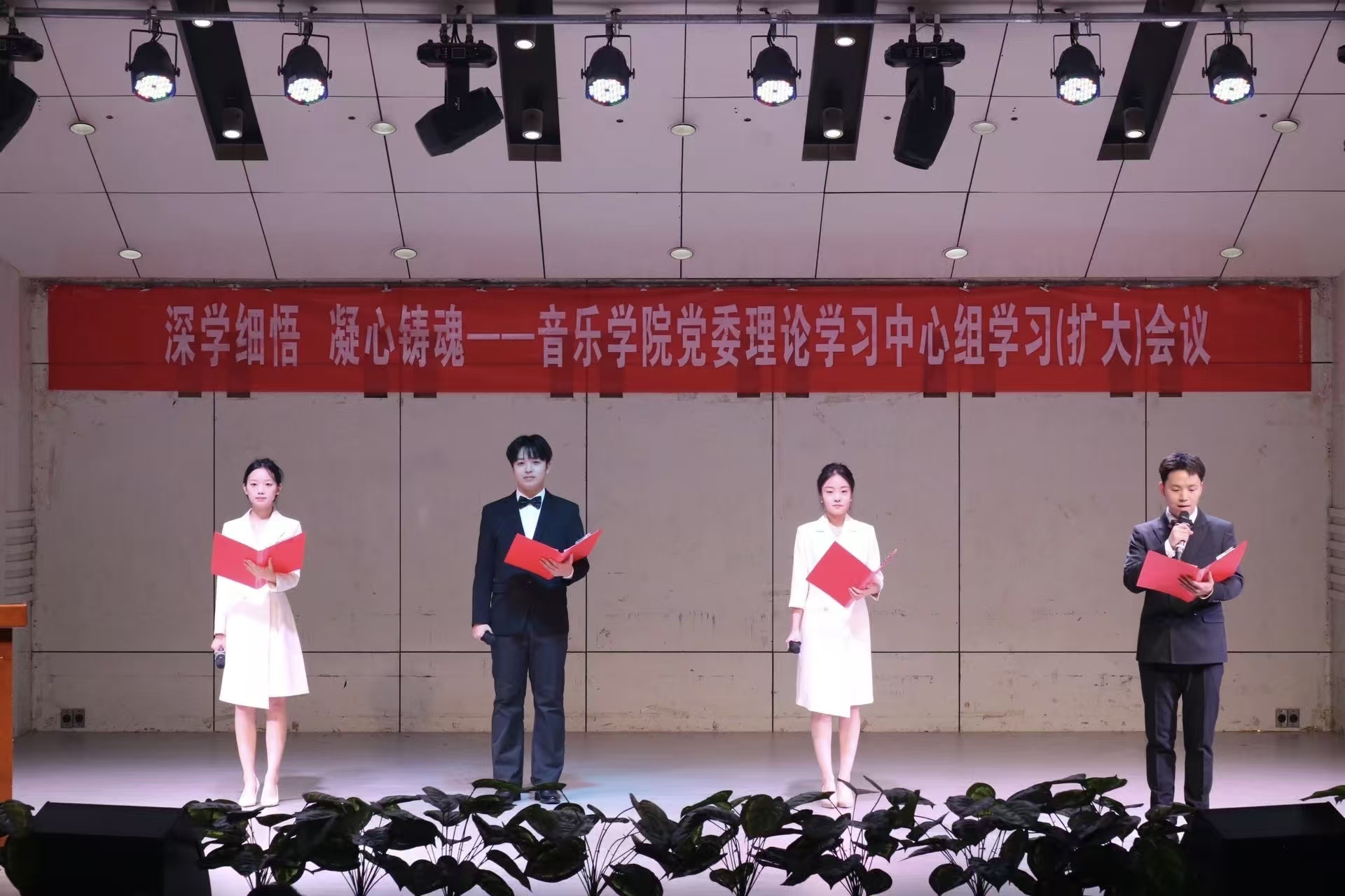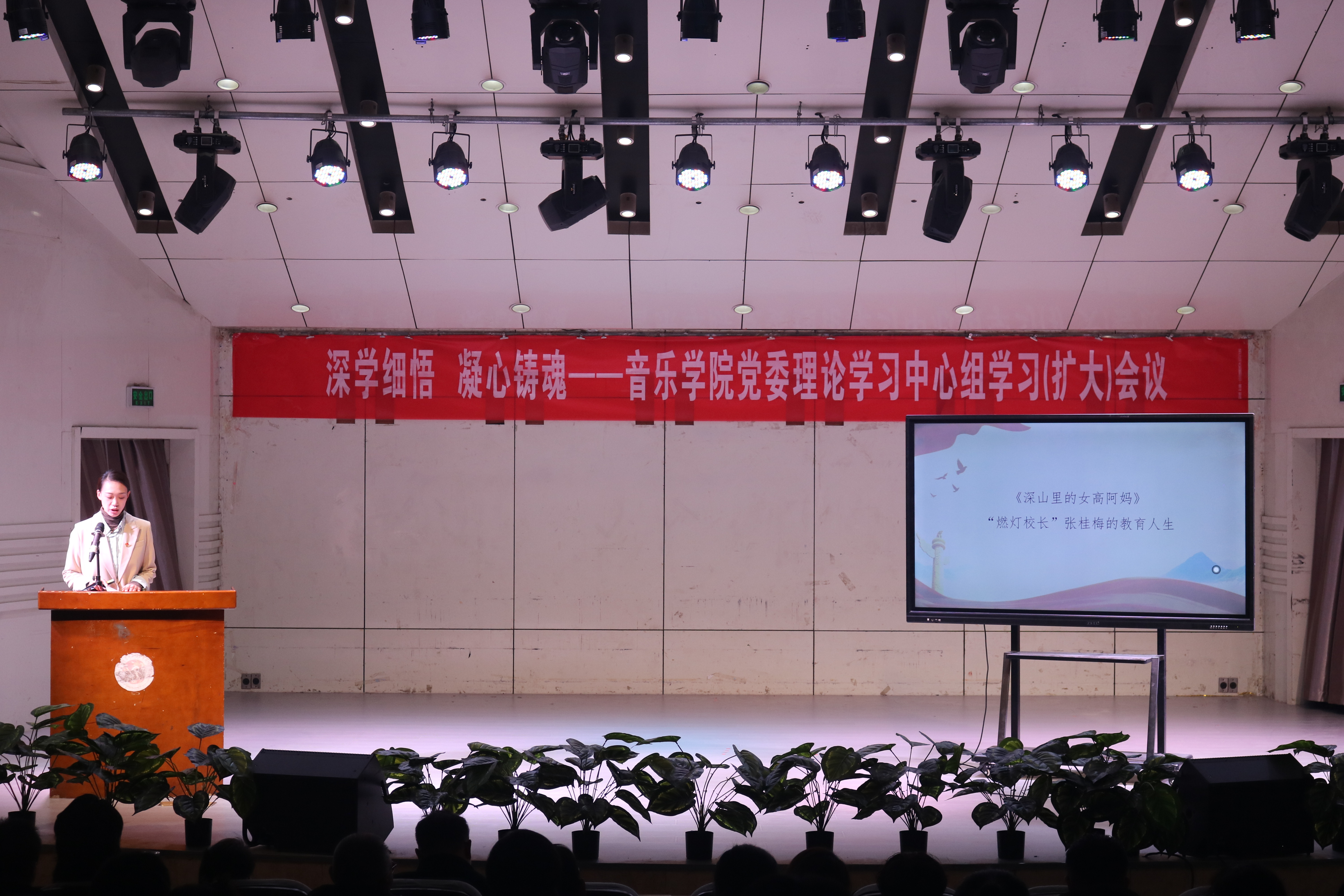 本次学习突破传统模式,创新采用“理论宣讲+舞台实践+感悟分享”三位一体的沉浸式学习方式。学院党委书记彭分田带头领学,围绕新时代音乐舞蹈学科发展,强调要坚持立德树人根本任务,扎根时代生活,强化学科内涵,服务社会大众,推动学科高质量发展。
