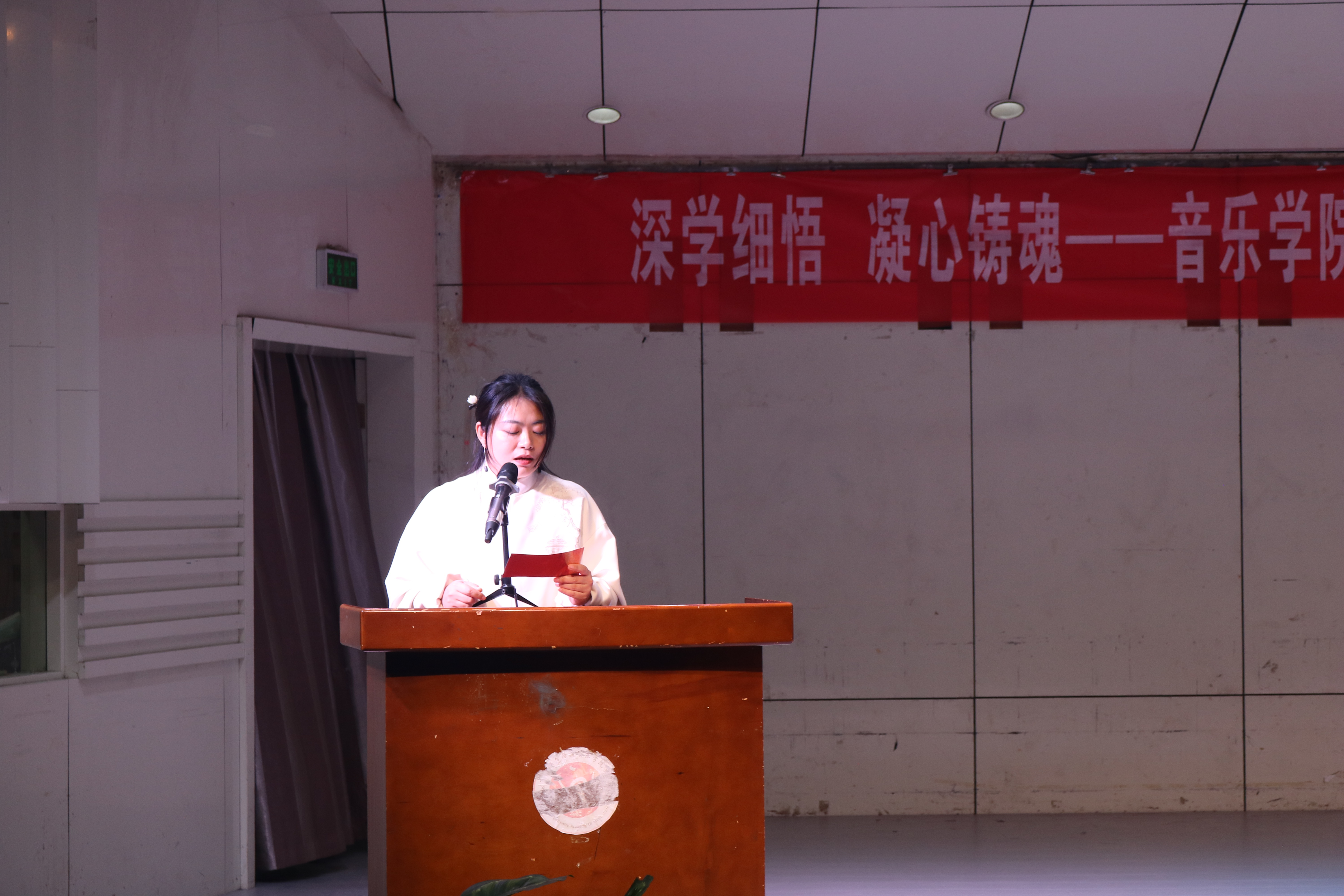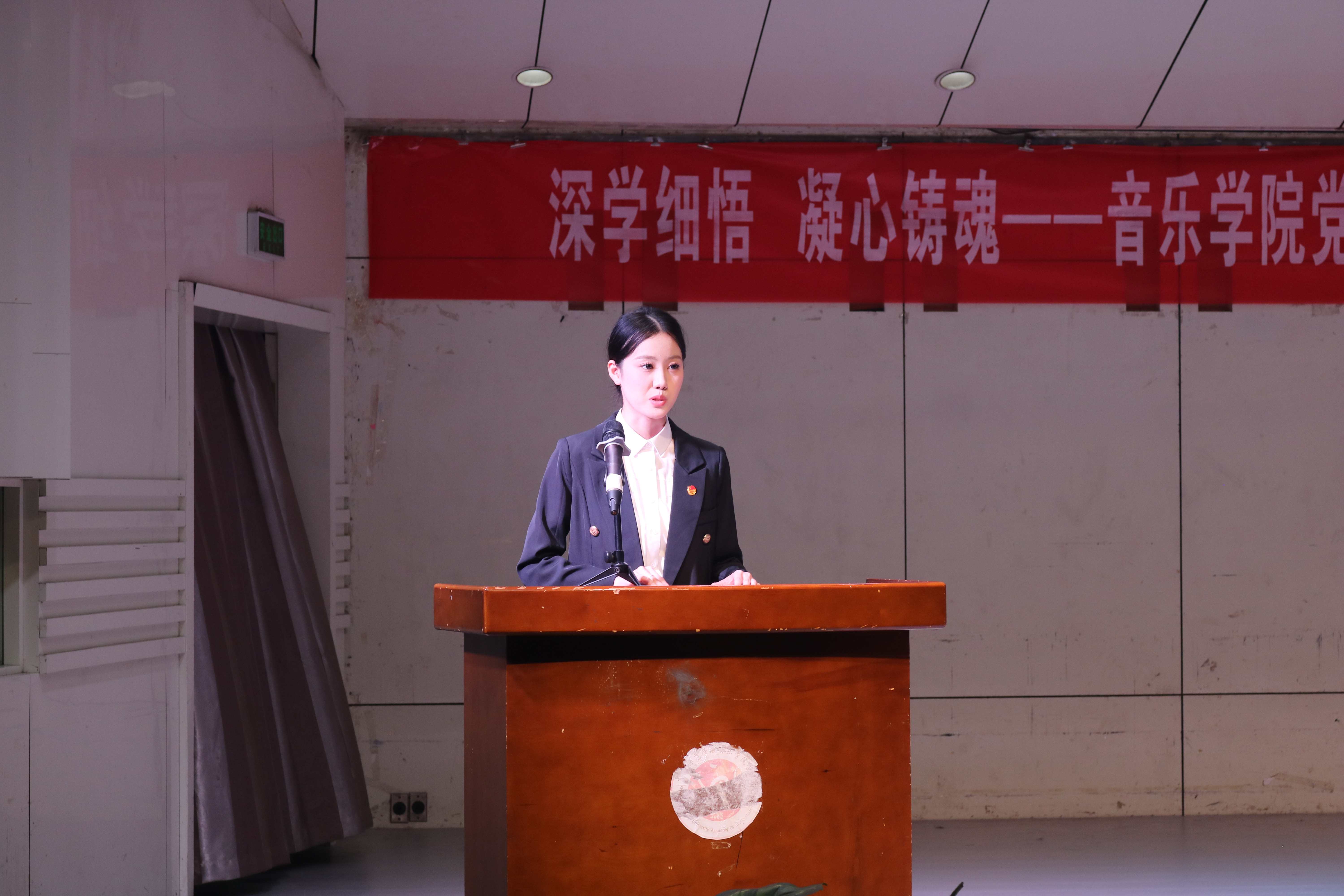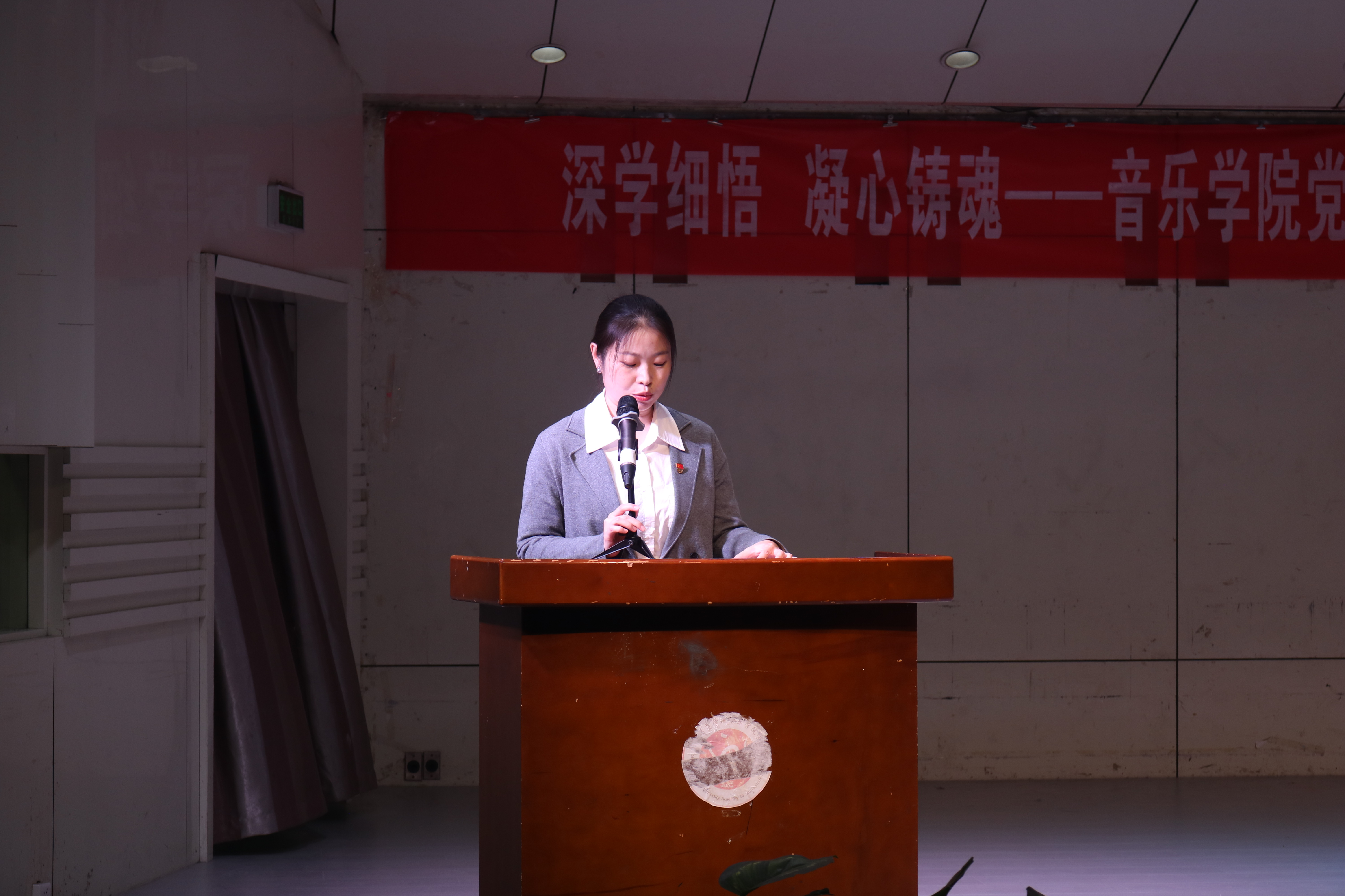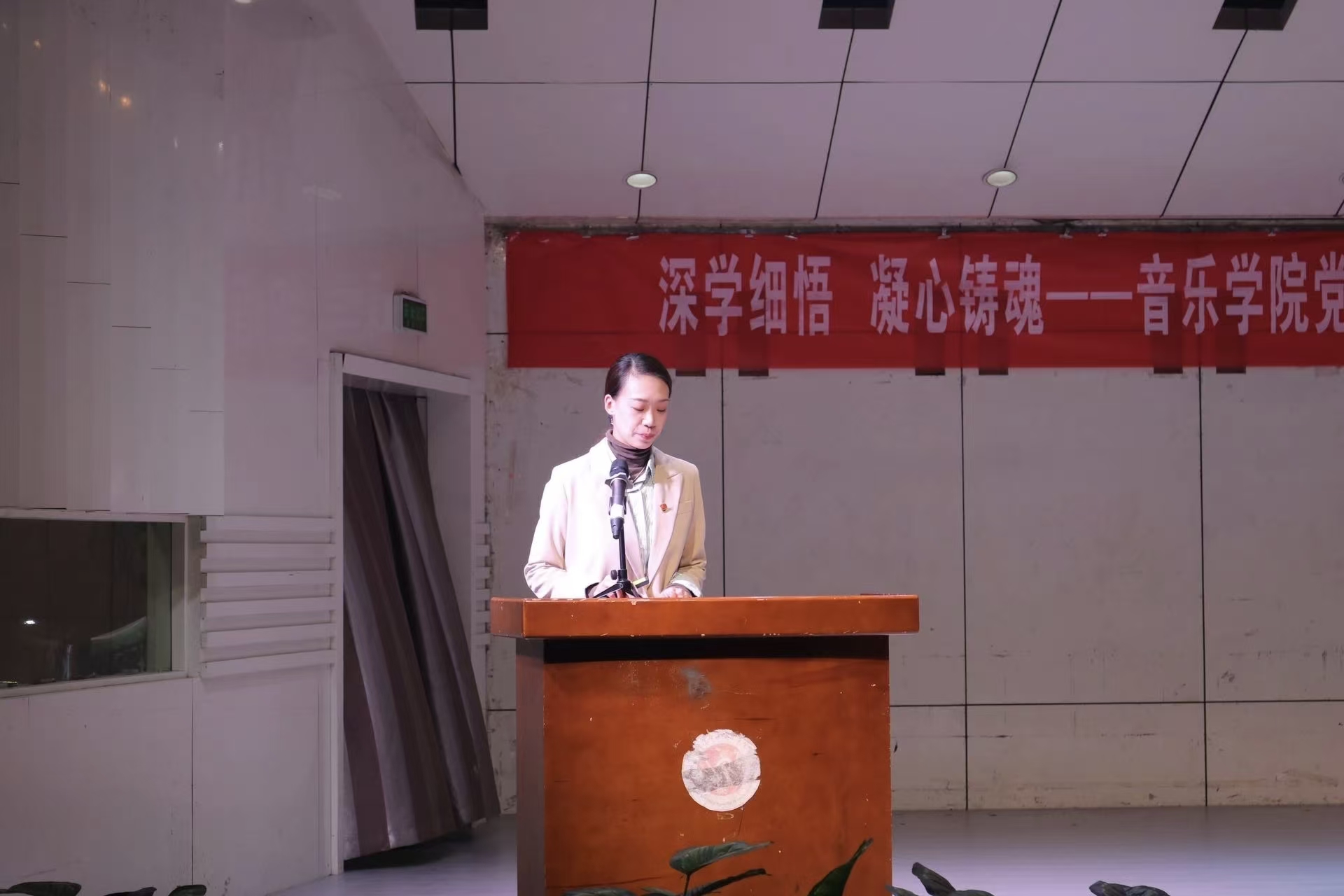本次学习突破传统模式,创新采用“理论宣讲+舞台实践+感悟分享”三位一体的沉浸式学习方式。学院党委书记彭分田带头领学,围绕新时代音乐舞蹈学科发展,强调要坚持立德树人根本任务,扎根时代生活,强化学科内涵,服务社会大众,推动学科高质量发展。